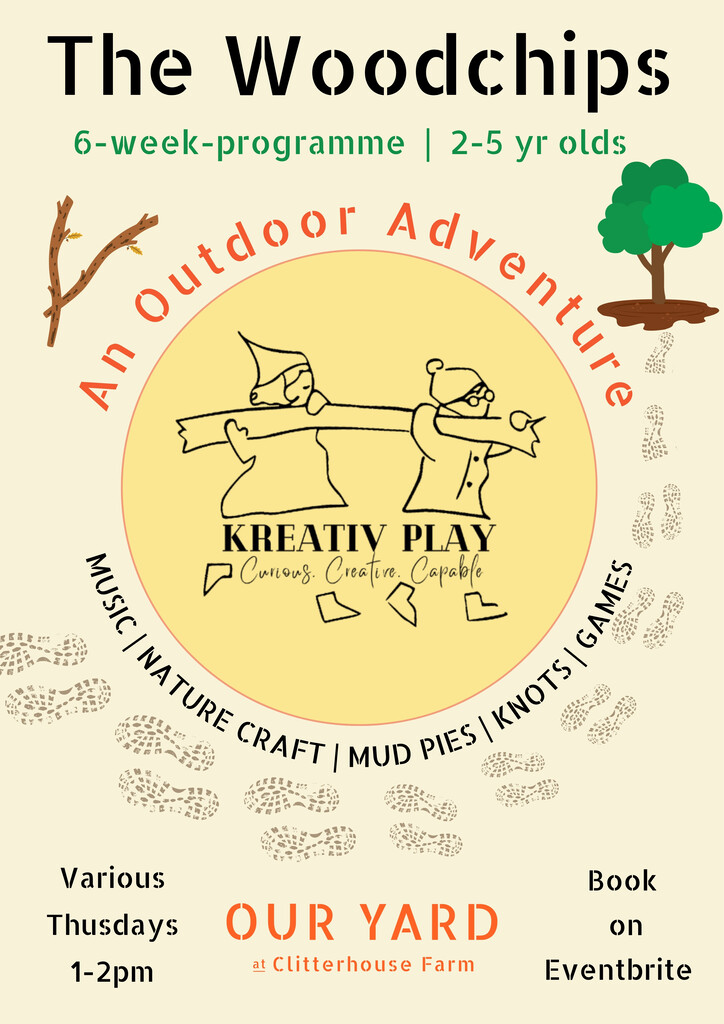 Tickets via Eventbrite: https://www.eventbrite.co.uk/e/the-woodchips-outdoor-adventure-2-5yrs-tickets-531086613357. Booking also available in person via Our Yard café.